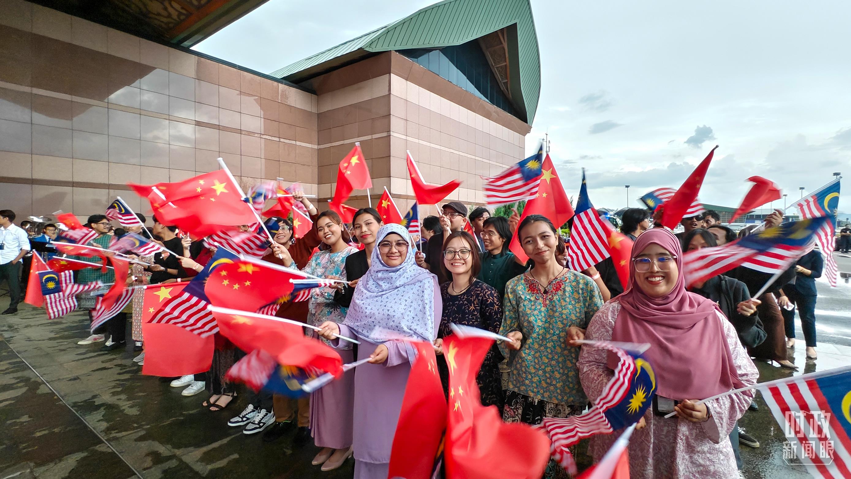 迎接習(xí)近平主席的馬來西亞當(dāng)?shù)厝巳?。(總臺央視記者韓銳拍攝)
