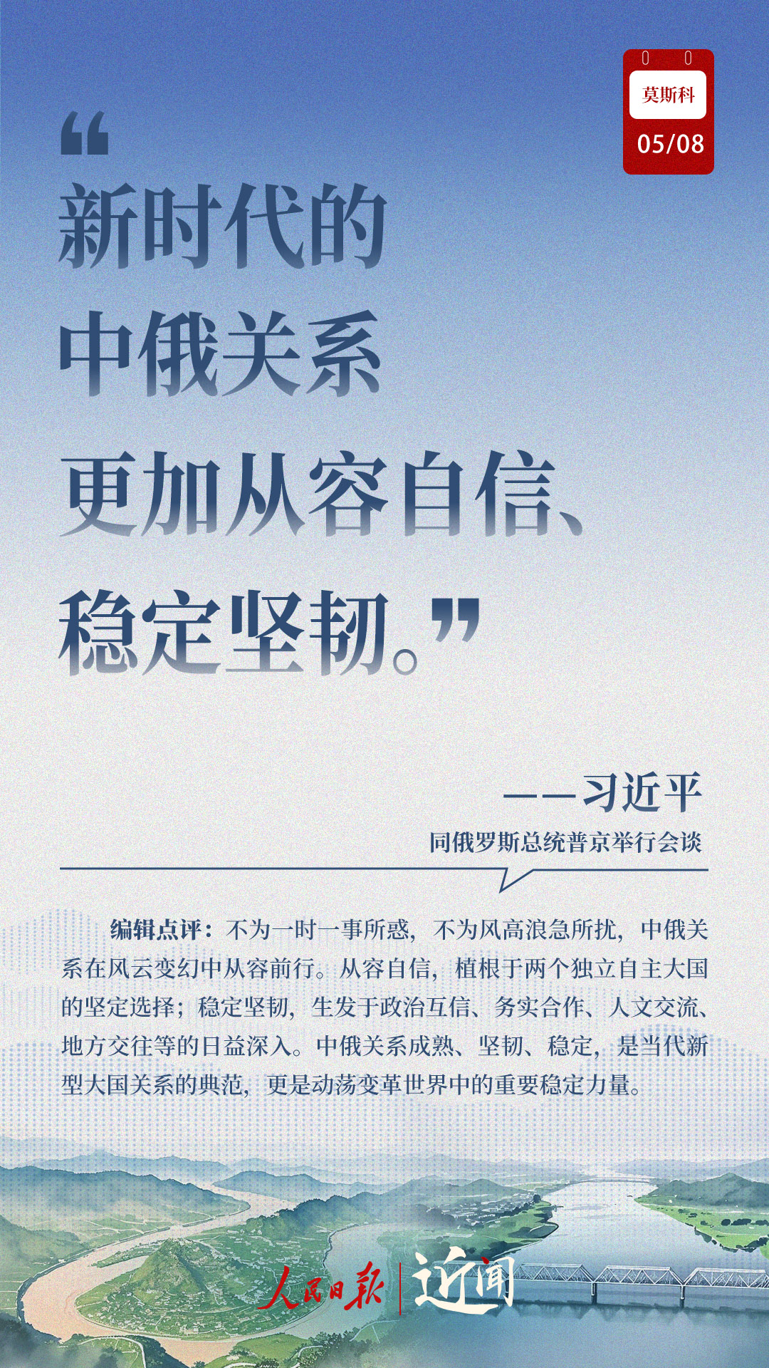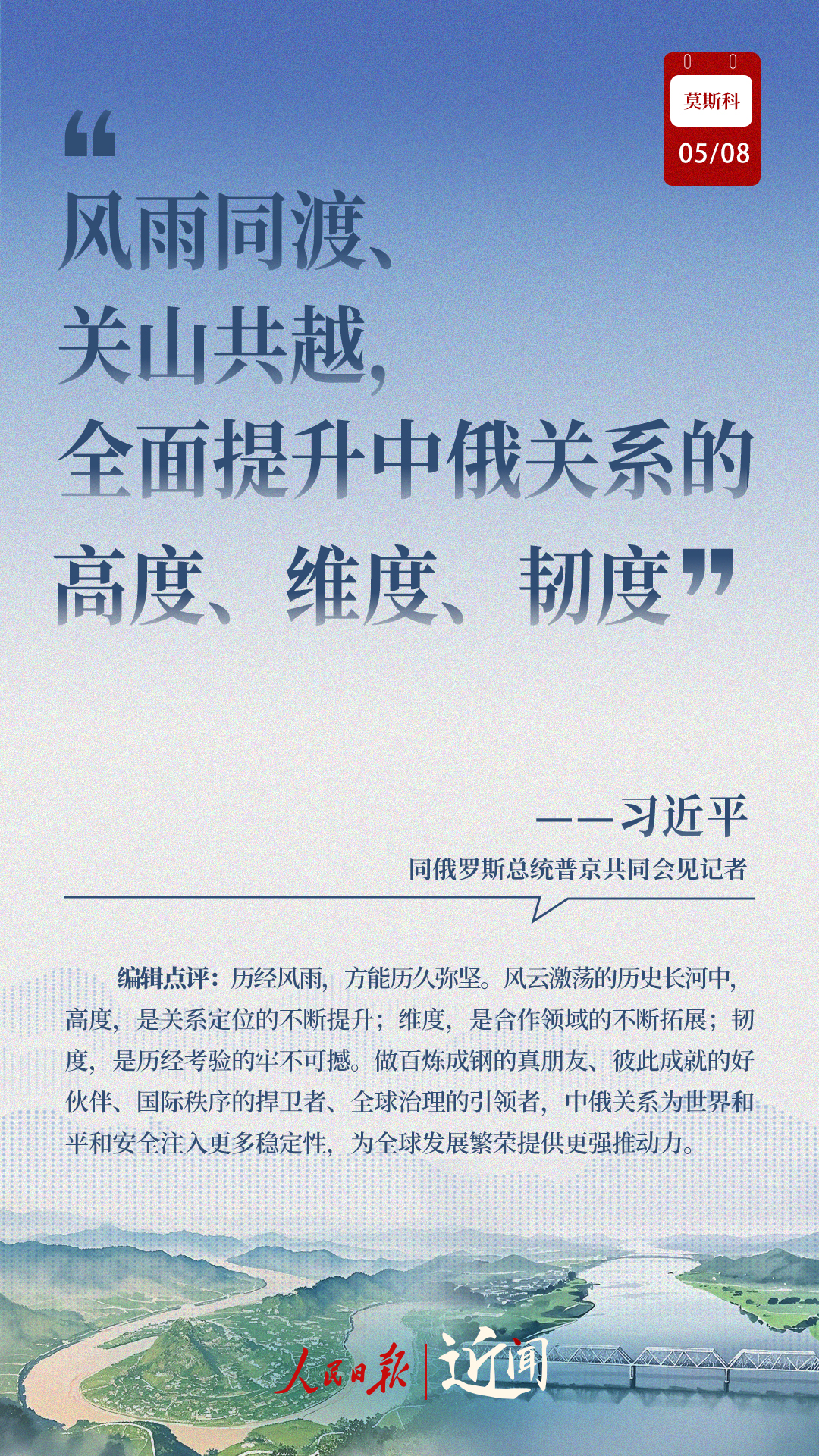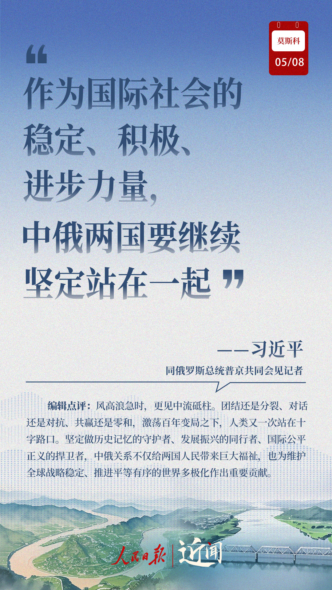 做百煉成鋼的真朋友、彼此成就的好伙伴、國際秩序的捍衛(wèi)者、全球治理的引領(lǐng)者,在紀(jì)念中國人民抗日戰(zhàn)爭、蘇聯(lián)偉大衛(wèi)國戰(zhàn)爭勝利和聯(lián)合國成立80周年之際,中俄新時代全面戰(zhàn)略協(xié)作伙伴關(guān)系進(jìn)一步深化。