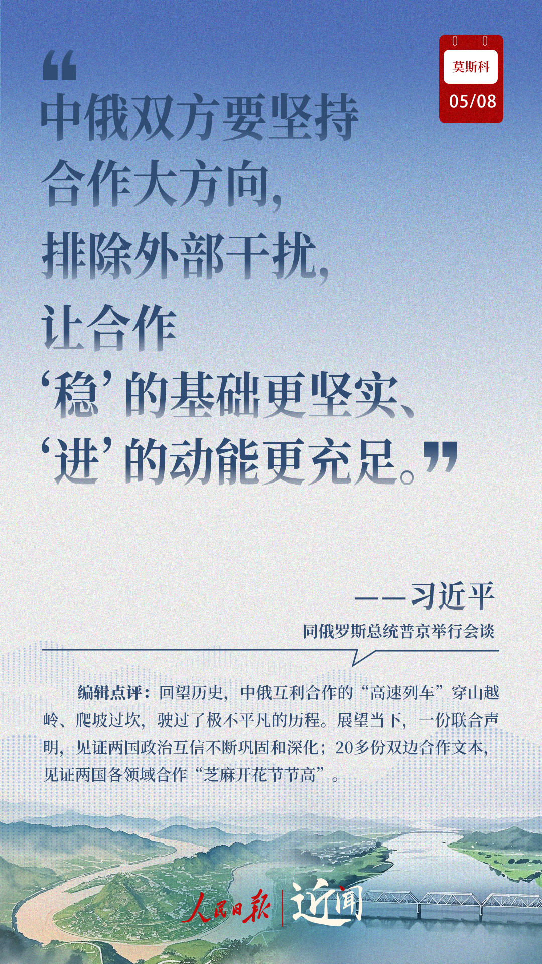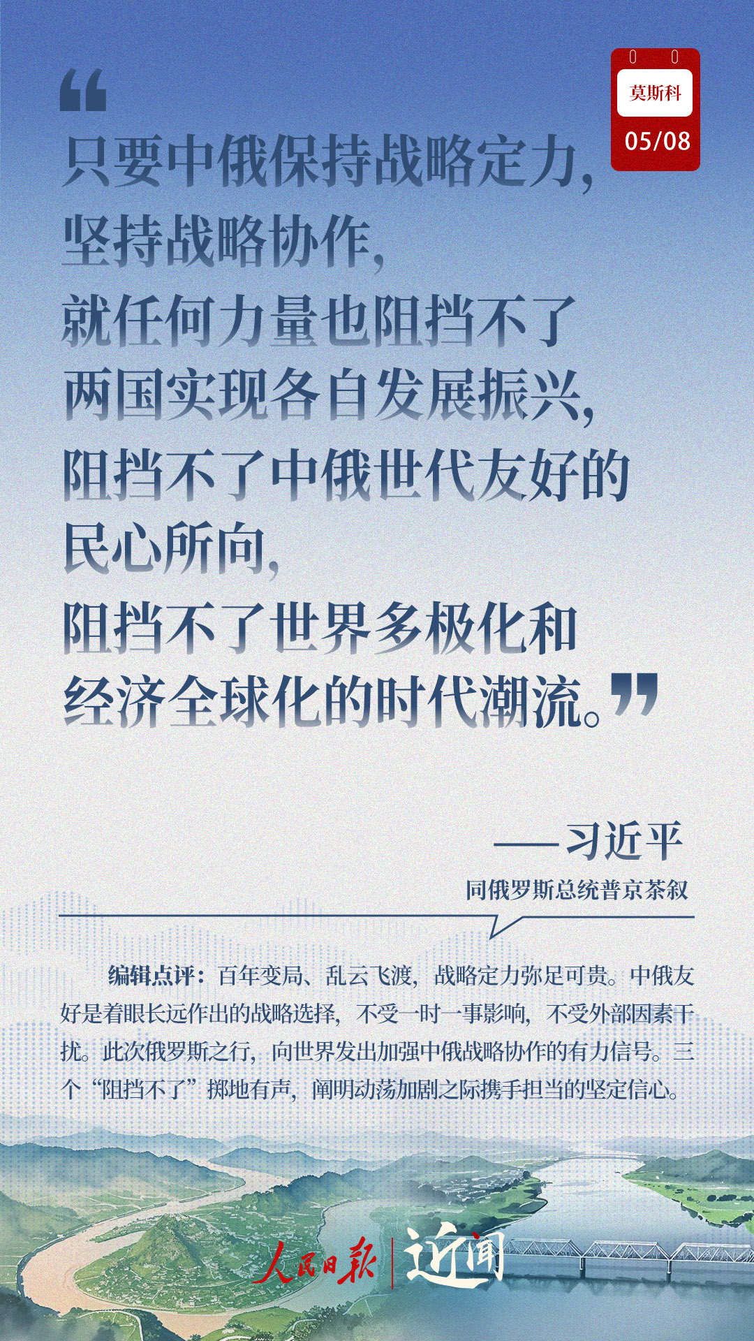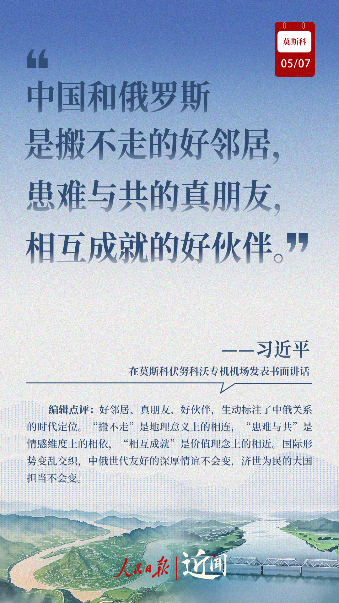 做百煉成鋼的真朋友、彼此成就的好伙伴、國際秩序的捍衛(wèi)者、全球治理的引領(lǐng)者,在紀(jì)念中國人民抗日戰(zhàn)爭、蘇聯(lián)偉大衛(wèi)國戰(zhàn)爭勝利和聯(lián)合國成立80周年之際,中俄新時代全面戰(zhàn)略協(xié)作伙伴關(guān)系進(jìn)一步深化。