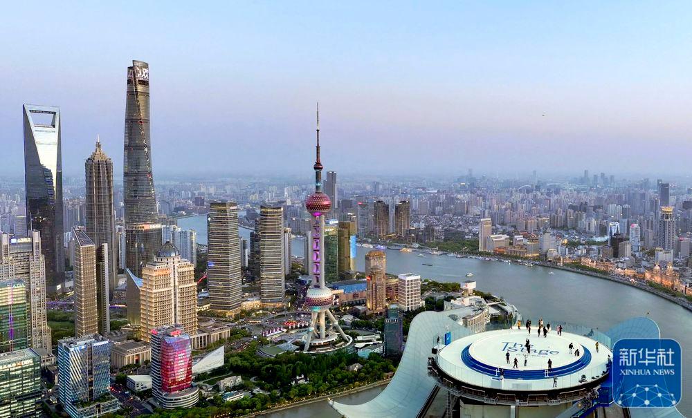 2025年4月14日在上海白玉蘭觀景臺拍攝的城市天際線(無人機(jī)照片)。
