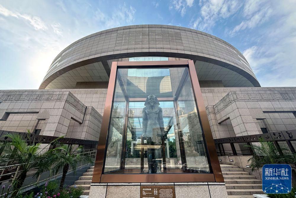 2024年7月17日在上海博物館人民廣場館南門拍攝的“金字塔之巔:古埃及文明大展”美內(nèi)普塔站像,這是上海博物館首次把文物展品放在室外展出。該展是近20年來埃及在境外舉辦的最大規(guī)模文物展,其中95%以上的文物是首次來到亞洲,于2024年7月19日正式向公眾開放,將持續(xù)至2025年8月。