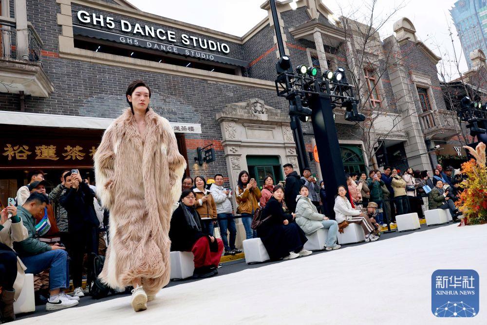 2024年12月7日,模特在“?!づ蓮垐@時尚文化周”中國青年設(shè)計(jì)師時裝秀上展示設(shè)計(jì)師服裝作品。時裝秀以張園建筑主色調(diào)與設(shè)計(jì)線條為靈感,百年石庫門建筑群落為背景,將茂名北路作為T臺秀場,獨(dú)具上海特色。