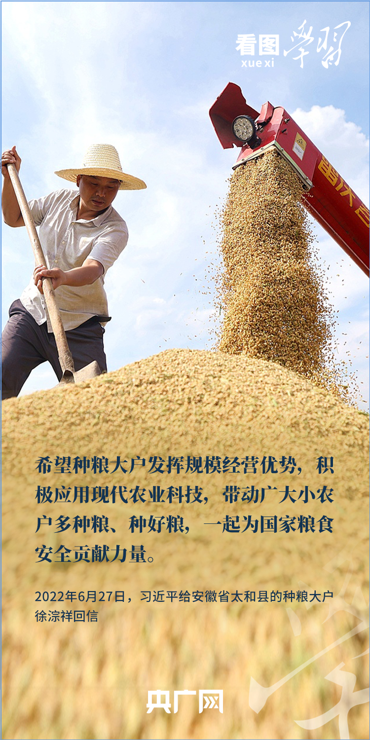 豐收,是農(nóng)民的希望,也是習(xí)近平總書記深深的牽掛。在春耕春播、夏收夏種、秋收秋種等不同時(shí)節(jié),總書記每到地方考察,常要去田間地頭,查看農(nóng)作物長勢,和鄉(xiāng)親們聊種子、耕地、農(nóng)機(jī)、農(nóng)技、收成、收入等情況,強(qiáng)調(diào)要牢牢把住糧食安全主動(dòng)權(quán),糧食生產(chǎn)年年要抓緊。
