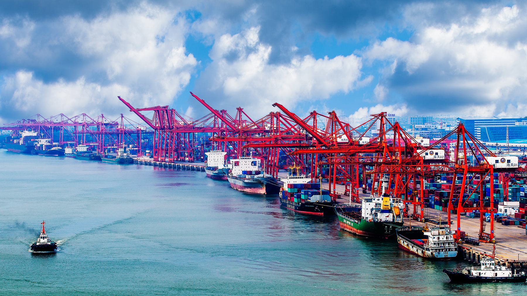 碧海藍(lán)天間,廈門港東渡港區(qū)“絲路海運(yùn)始發(fā)港”幾個大字格外醒目。