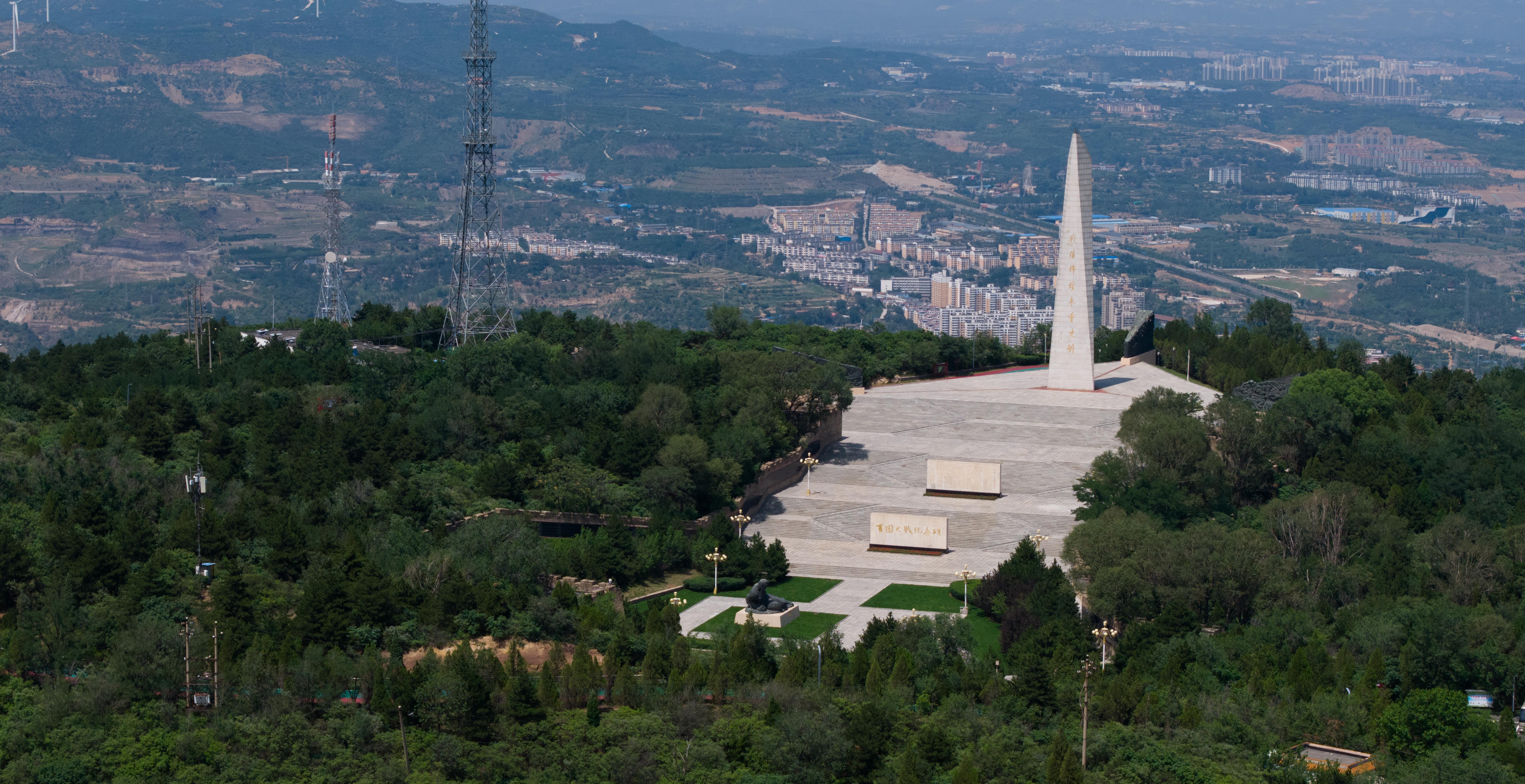 △獅腦山頂峰,百團(tuán)大戰(zhàn)紀(jì)念碑如一把鋒利的刺刀直插云霄。(總臺(tái)國(guó)廣記者李晉拍攝)