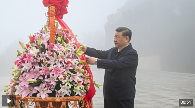 習(xí)近平在陽泉市向抗戰(zhàn)烈士敬獻花籃并參觀百團大戰(zhàn)紀(jì)念館