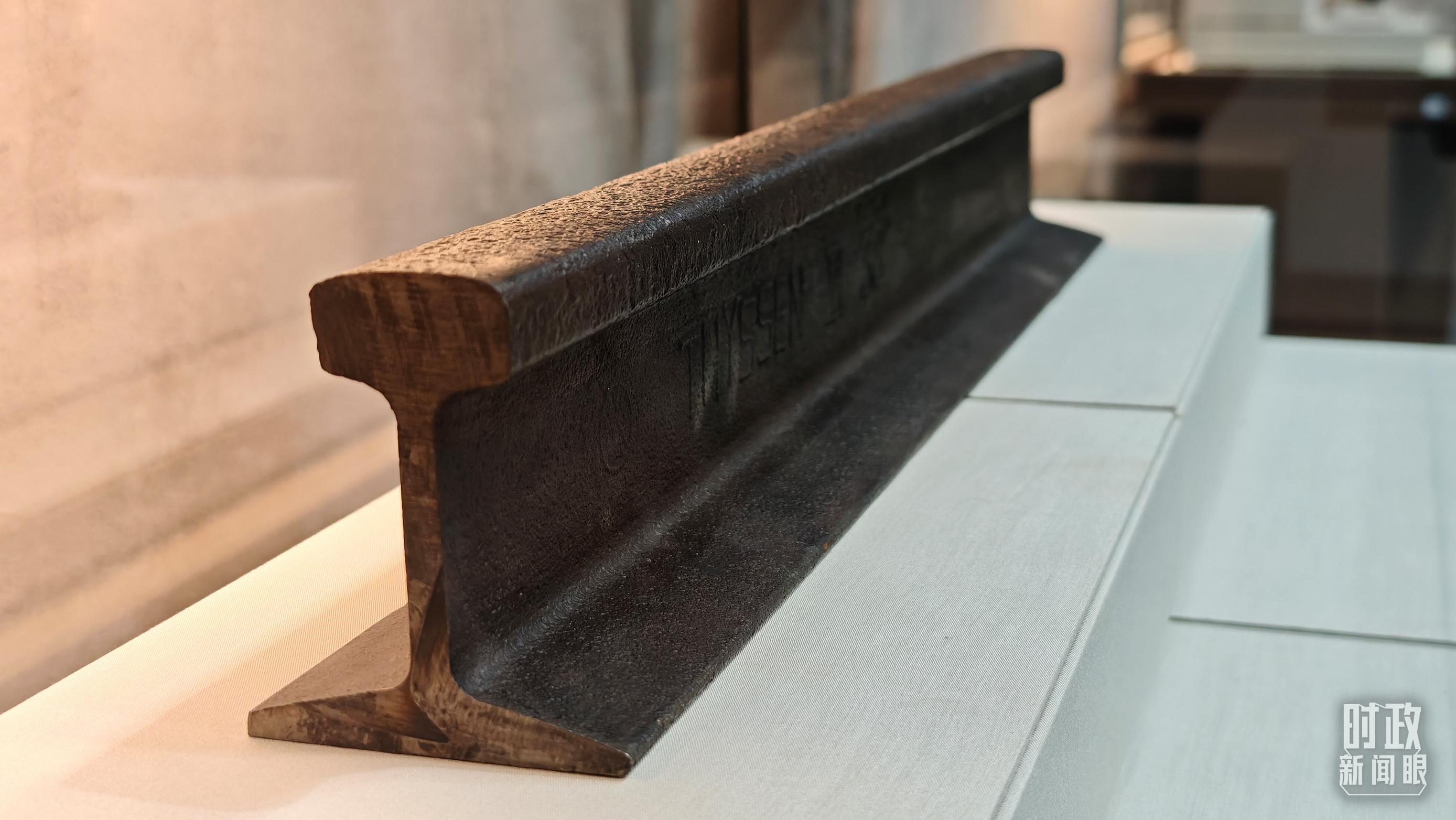 百團大戰(zhàn)紀(jì)念館展陳——正太鐵路鐵軌。(總臺央視記者許永松拍攝)