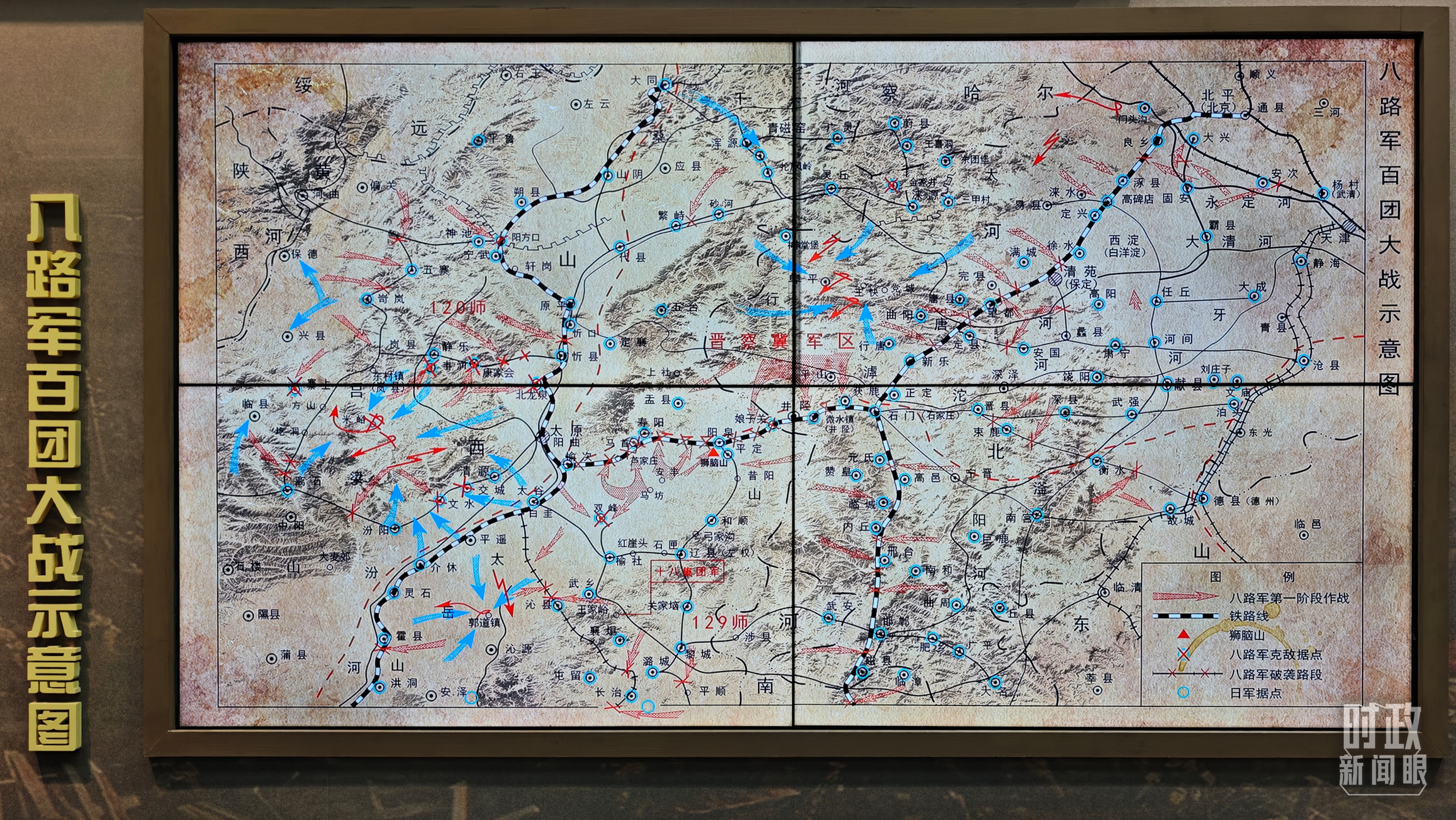 百團大戰(zhàn)紀(jì)念館展陳——八路軍百團大戰(zhàn)示意圖。(總臺央視記者許永松拍攝)