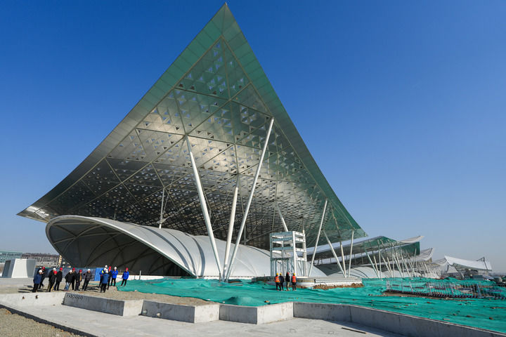 北京城市副中心站綜合交通樞紐工程和“京帆”屋蓋(2025年2月26日攝)。新華社記者 鞠煥宗 攝