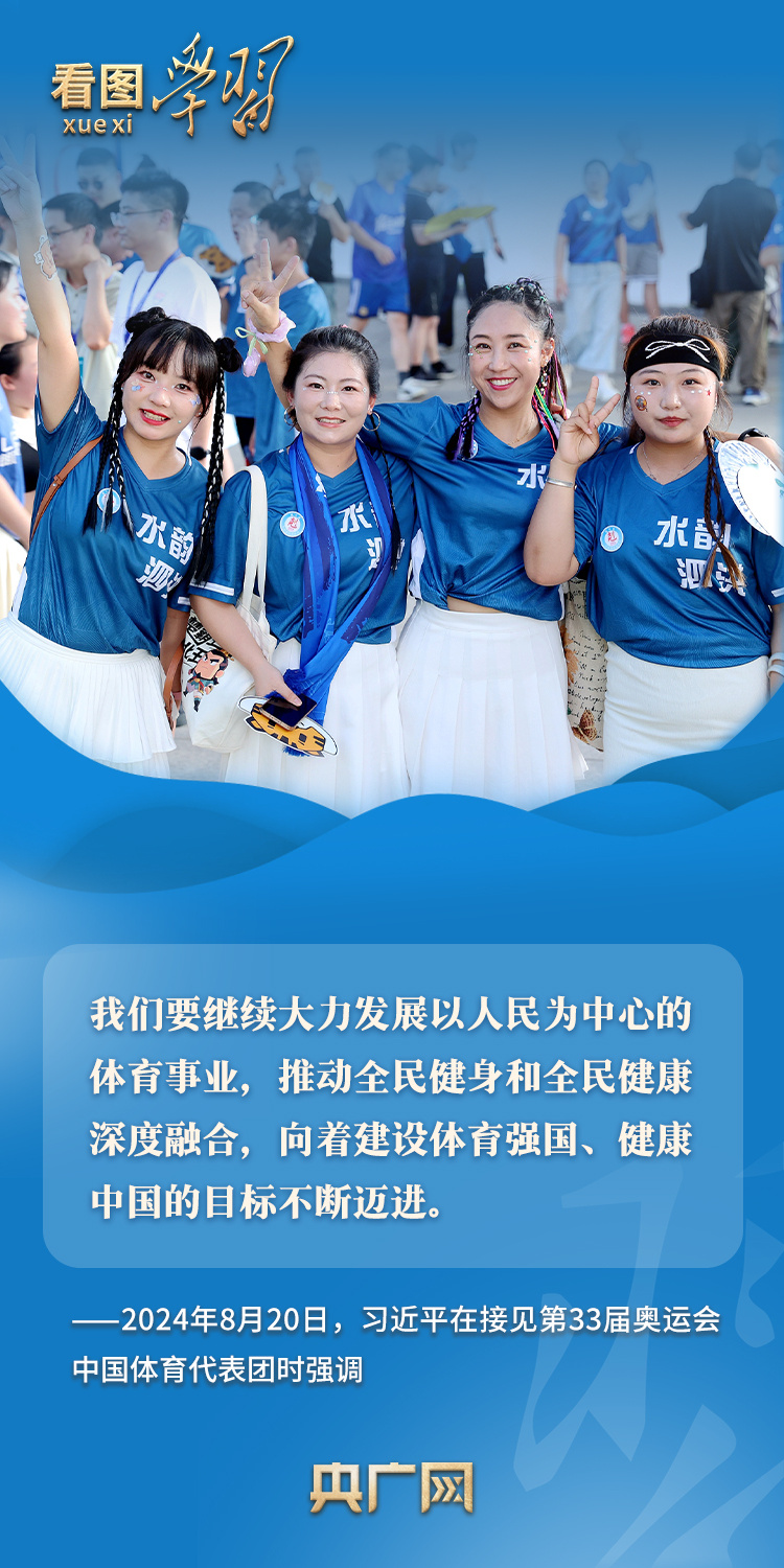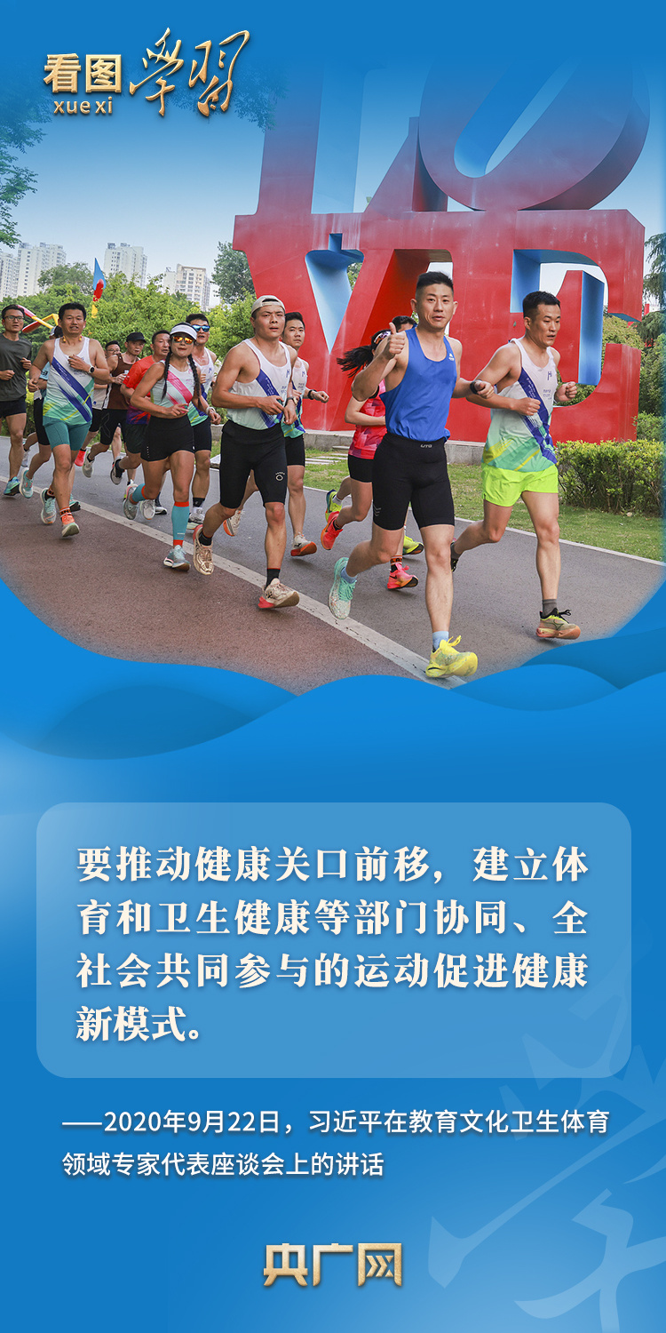 習(xí)近平總書記高度重視提高全民族身體素質(zhì)和生活質(zhì)量,強(qiáng)調(diào)要推動(dòng)全民健身和全民健康深度融合。作為全民健身的倡導(dǎo)者、踐行者,總書記曾形象地指出,“健康是幸福生活最重要的指標(biāo),健康是1,其他是后面的0,沒有1,再多的0也沒有意義”,要“構(gòu)建更高水平的全民健身公共服務(wù)體系”,以推動(dòng)全民健身高質(zhì)量發(fā)展,筑牢中國(guó)式現(xiàn)代化健康之基。