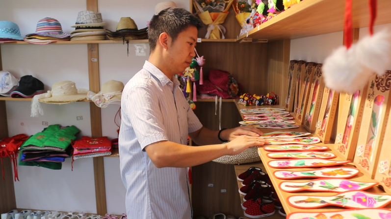 從外地返鄉(xiāng)的“90后”扶銀廷和妻子,在田鋪大塆創(chuàng)辦了一家“文創(chuàng)工坊”。“像鞋墊、虎頭枕、虎頭帽這些手工制品,都是我們當(dāng)?shù)匾恍├先?、大姐手工做的。這些特色的文創(chuàng)產(chǎn)品既能讓游客了解當(dāng)?shù)乇就廖幕?,又增加了村民收入。”扶銀廷說。