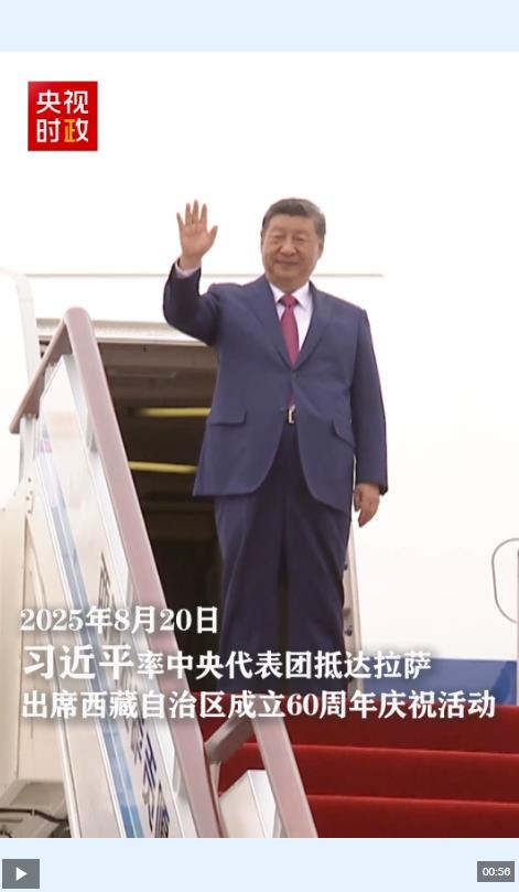 中共中央總書記、國家主席、中央軍委主席習近平率中央代表團20日中午乘專機抵達拉薩,出席西藏自治區(qū)成立60周年慶?;顒?。