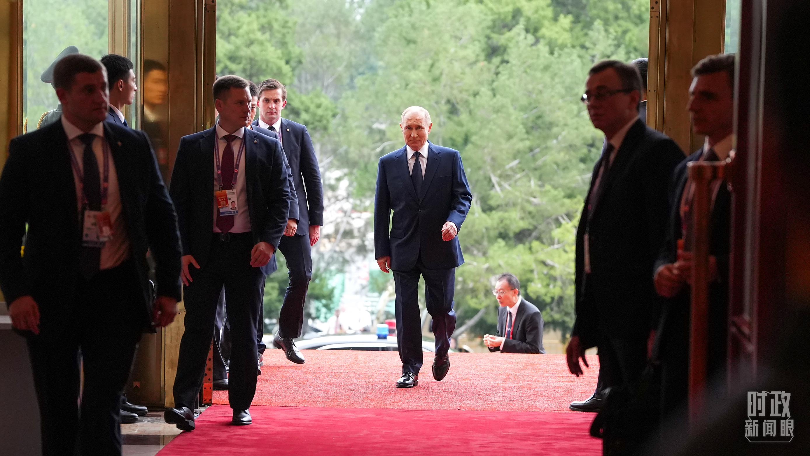△普京總統(tǒng)步入人民大會堂。(總臺記者李晉拍攝)