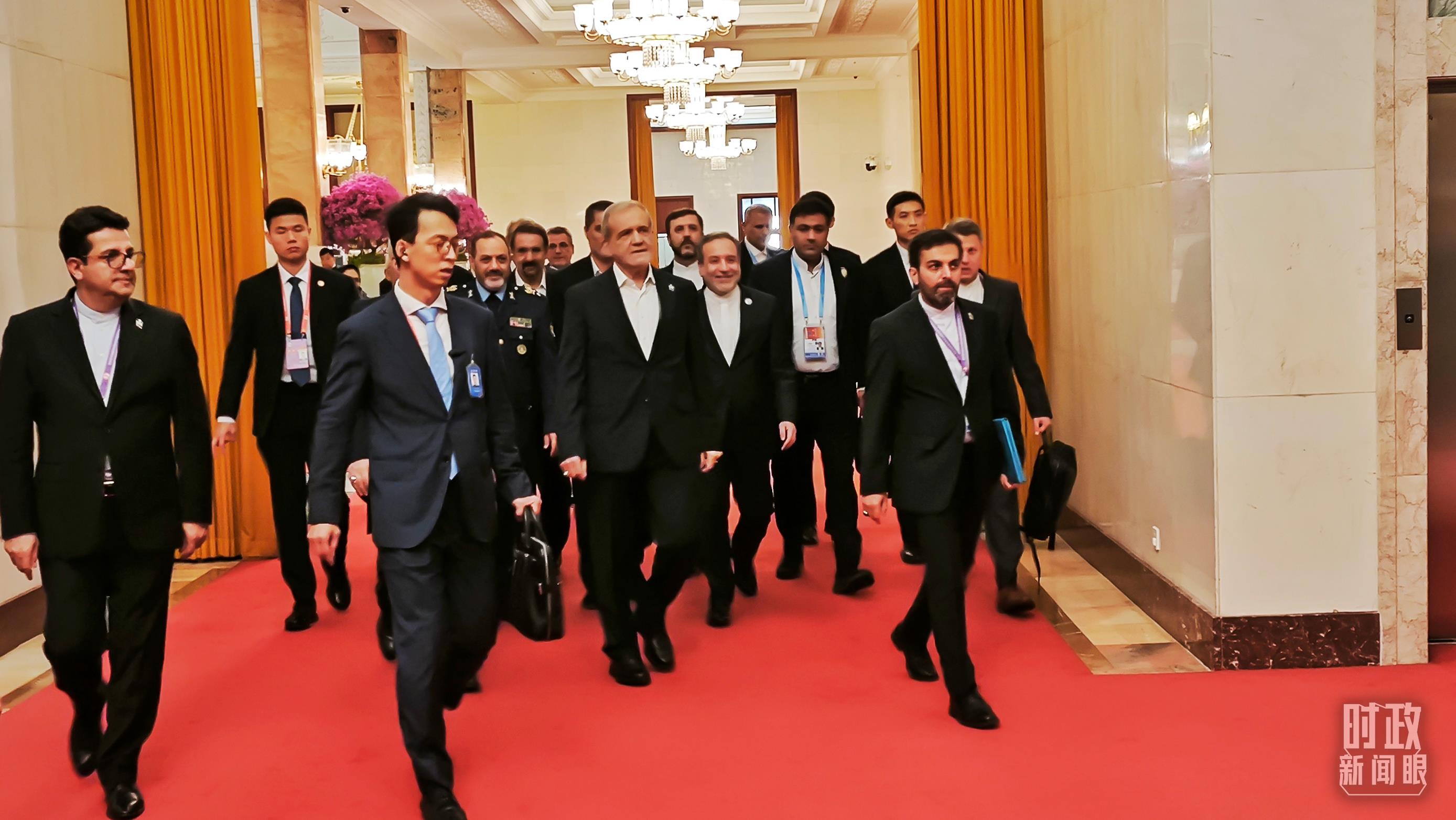 △伊朗總統(tǒng)佩澤希齊揚(yáng)走向會見廳。(總臺國廣記者蔡靖骉拍攝)