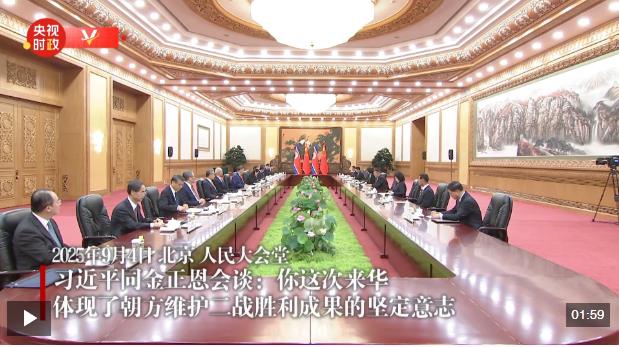 9月4日晚,中共中央總書記、國(guó)家主席習(xí)近平在北京人民大會(huì)堂同來華出席紀(jì)念中國(guó)人民抗日戰(zhàn)爭(zhēng)暨世界反法西斯戰(zhàn)爭(zhēng)勝利80周年活動(dòng)的朝鮮勞動(dòng)黨總書記、國(guó)務(wù)委員長(zhǎng)金正恩舉行會(huì)談。