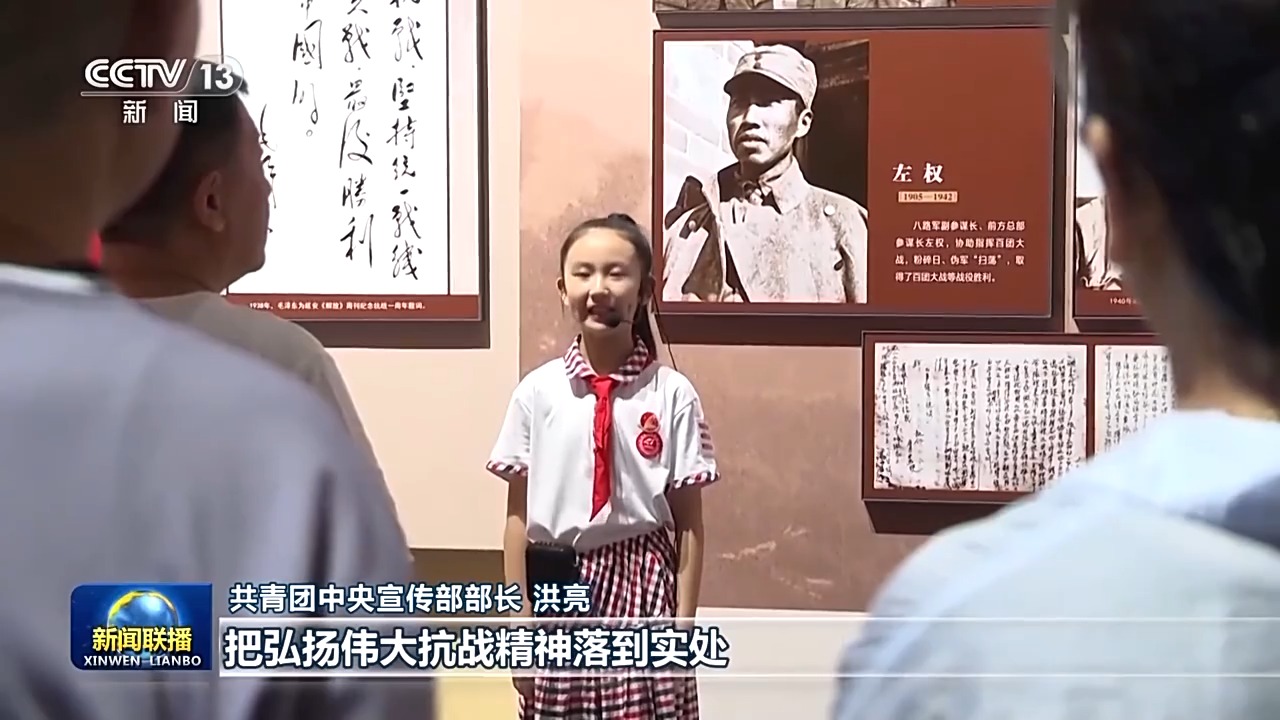 共青團(tuán)中央宣傳部部長(zhǎng) 洪亮:我們將以此為契機(jī),引導(dǎo)青少年從國(guó)家和民族的歷史記憶中,特別是抗戰(zhàn)歷史中得到啟迪,把弘揚(yáng)偉大抗戰(zhàn)精神落到實(shí)處,奮力書(shū)寫(xiě)為中國(guó)式現(xiàn)代化挺膺擔(dān)當(dāng)?shù)那啻浩隆?/p>