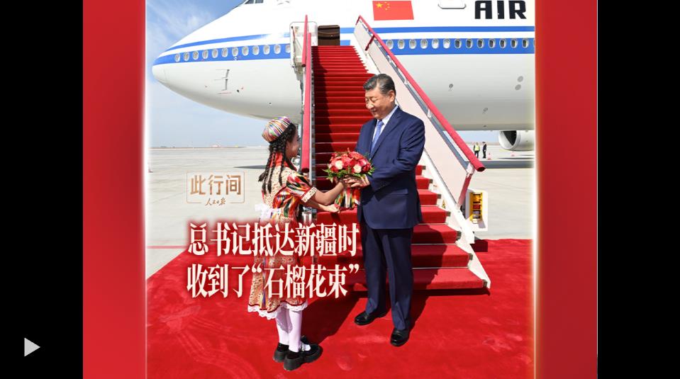 習(xí)近平率中央代表團(tuán)23日下午乘專(zhuān)機(jī)抵達(dá)烏魯木齊,出席新疆維吾爾自治區(qū)成立70周年慶?;顒?dòng),新疆各族群眾在機(jī)場(chǎng)熱烈歡迎??倳?shū)記收到的花束里,裝點(diǎn)了美麗的石榴。如今,“石榴籽”的妙喻為人熟知,民族團(tuán)結(jié)觀念深入人心。