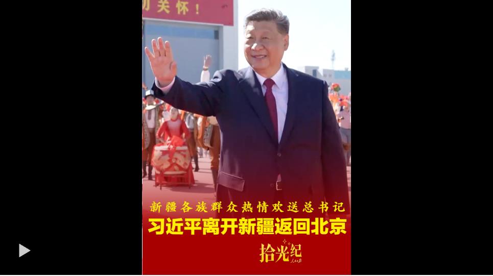 25日,習(xí)近平乘專機(jī)返回北京。烏魯木齊天山機(jī)場奏響別具特色的樂曲《我們在一起》,各族群眾載歌載舞熱情歡送總書記。