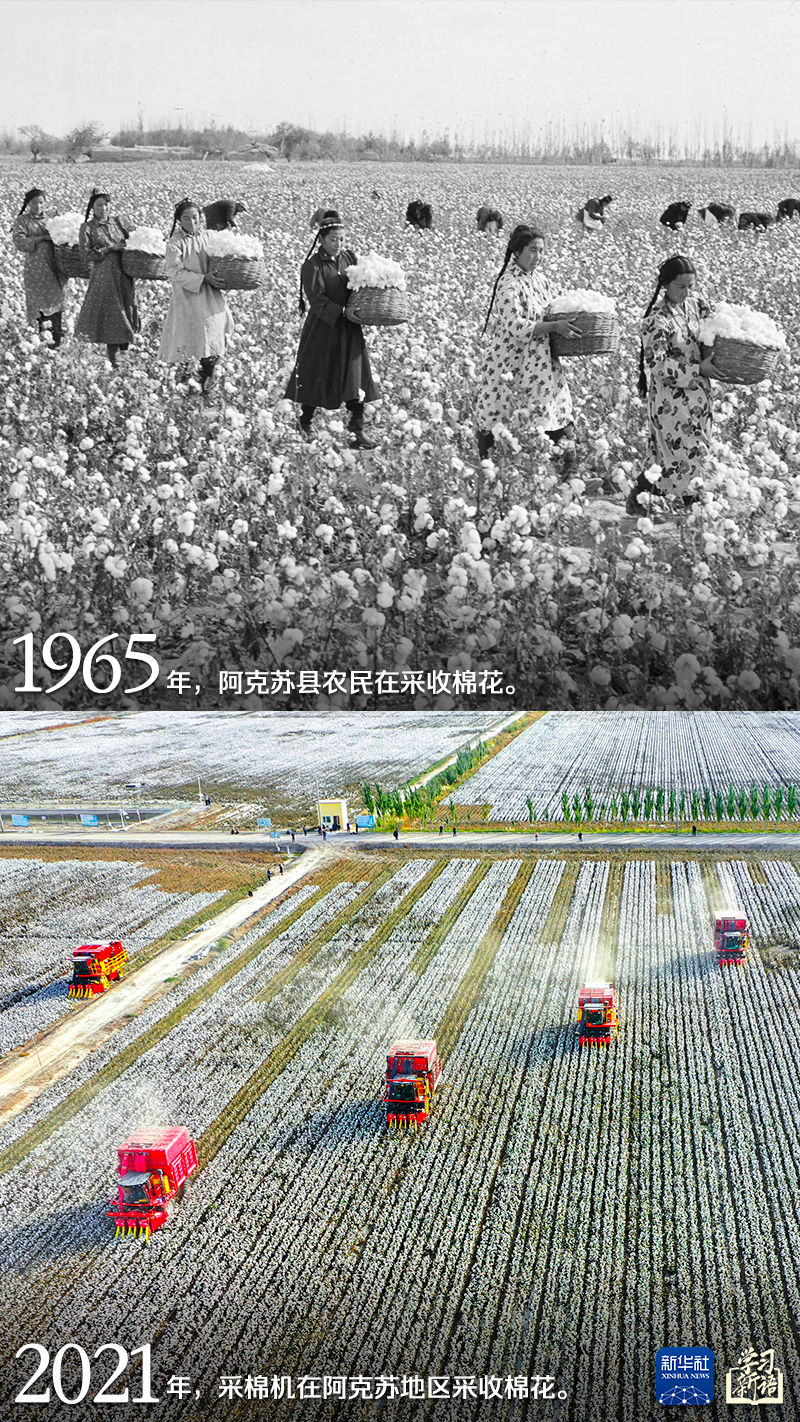 我們選取成就展上的一組照片,通過新舊對比,用鮮活的事實展現(xiàn)新疆取得的輝煌成就,一起感受翻天覆地的發(fā)展變化。