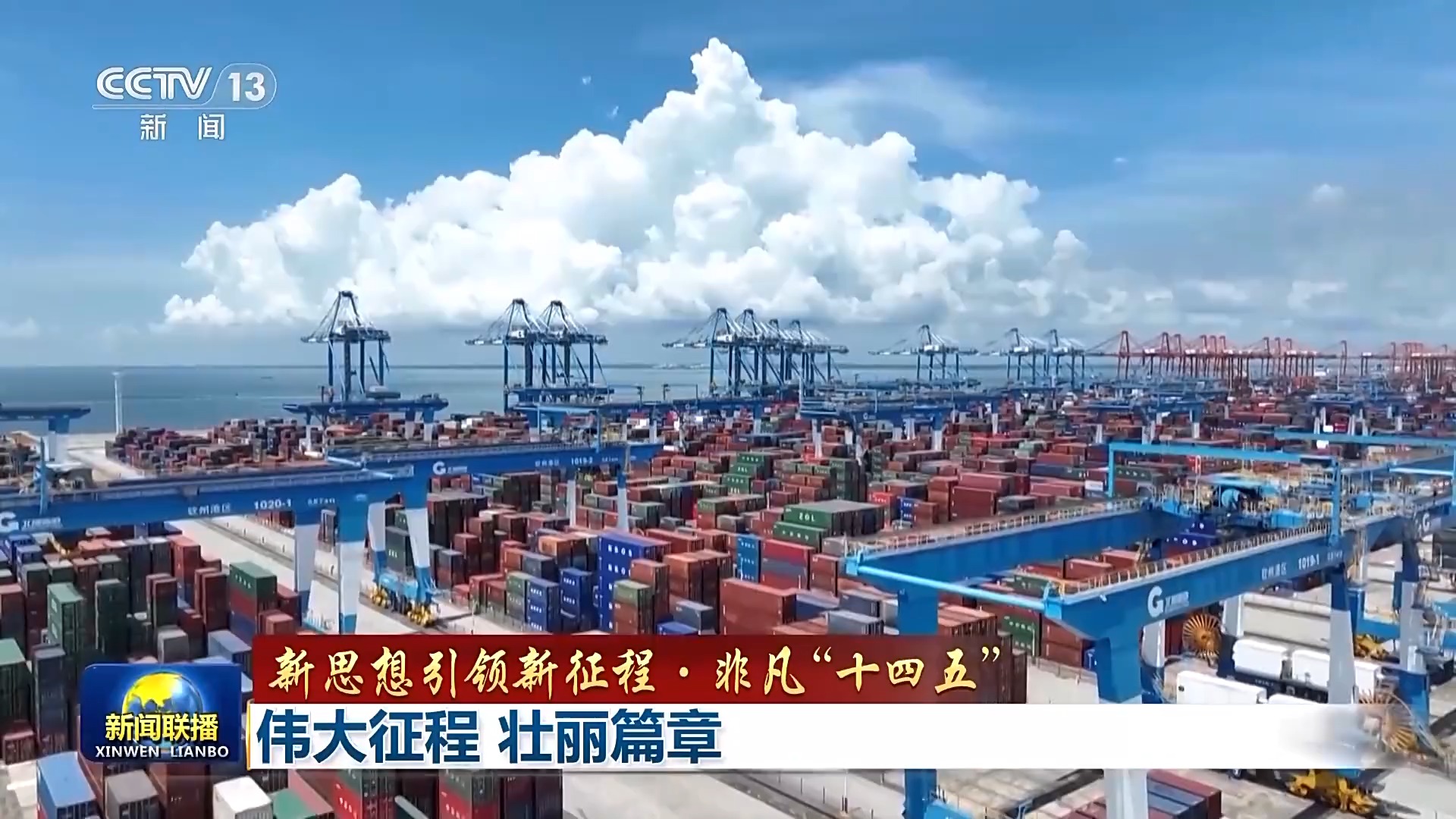 這是欣欣向榮的奮進(jìn)中國。五年經(jīng)濟(jì)增量預(yù)計(jì)超過35萬億元,高于世界排名第三國家的經(jīng)濟(jì)總量。對(duì)世界經(jīng)濟(jì)增長的貢獻(xiàn)率保持在30%左右;貨物貿(mào)易規(guī)模較“十三五”末增長了32.4%,連續(xù)8年穩(wěn)居全球第一。