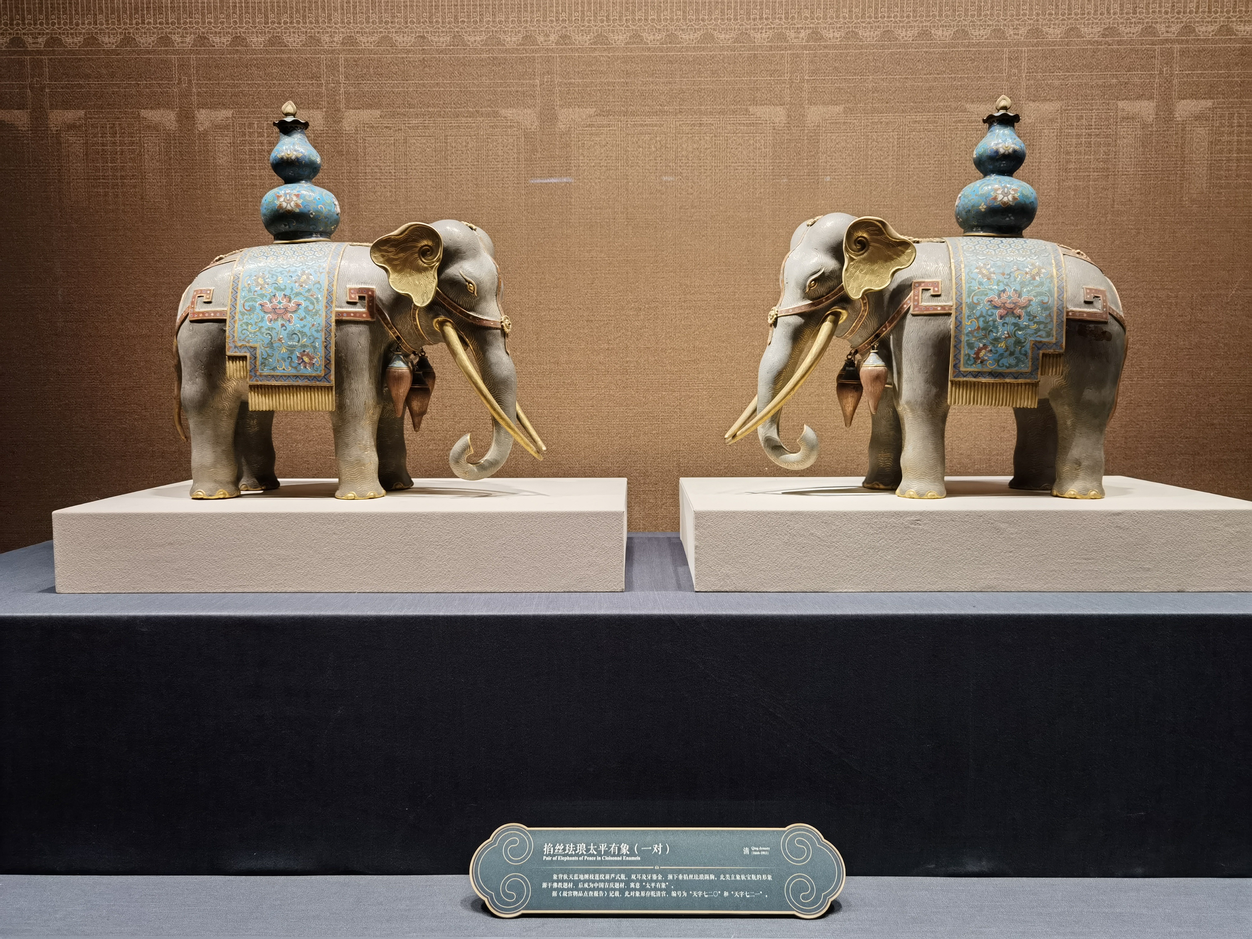 故宮展出的掐絲琺瑯太平有象。(總臺(tái)央視記者程愛華拍攝)
