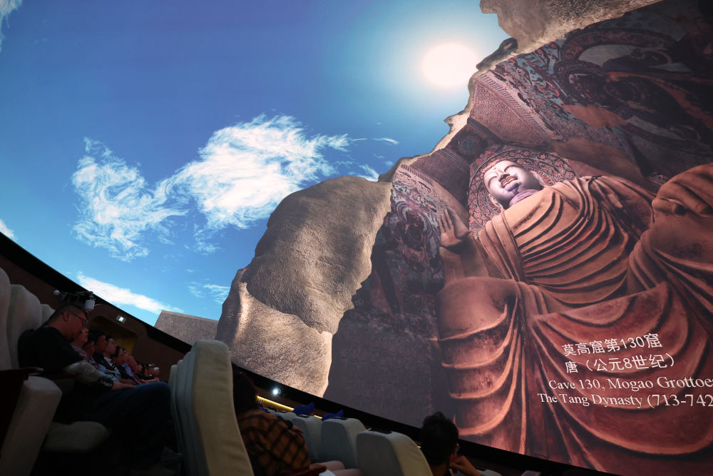 2024年9月4日,游客在敦煌莫高窟數(shù)字展示中心觀看球幕電影《夢幻佛宮》。