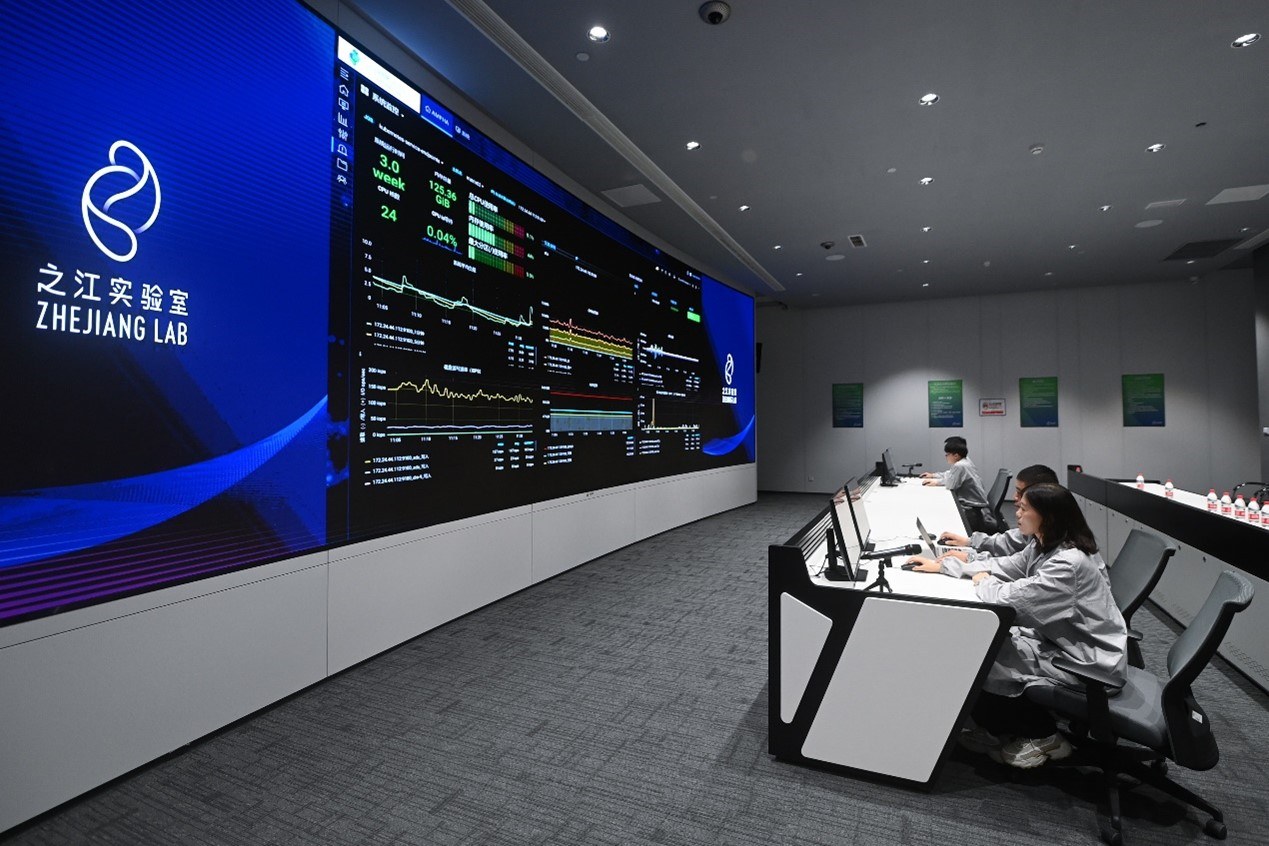 之江實(shí)驗(yàn)室計算與數(shù)據(jù)中心的工程師通過“之江云”系統(tǒng)監(jiān)測服務(wù)器集群的運(yùn)行狀態(tài)。新華社記者 黃宗治 攝