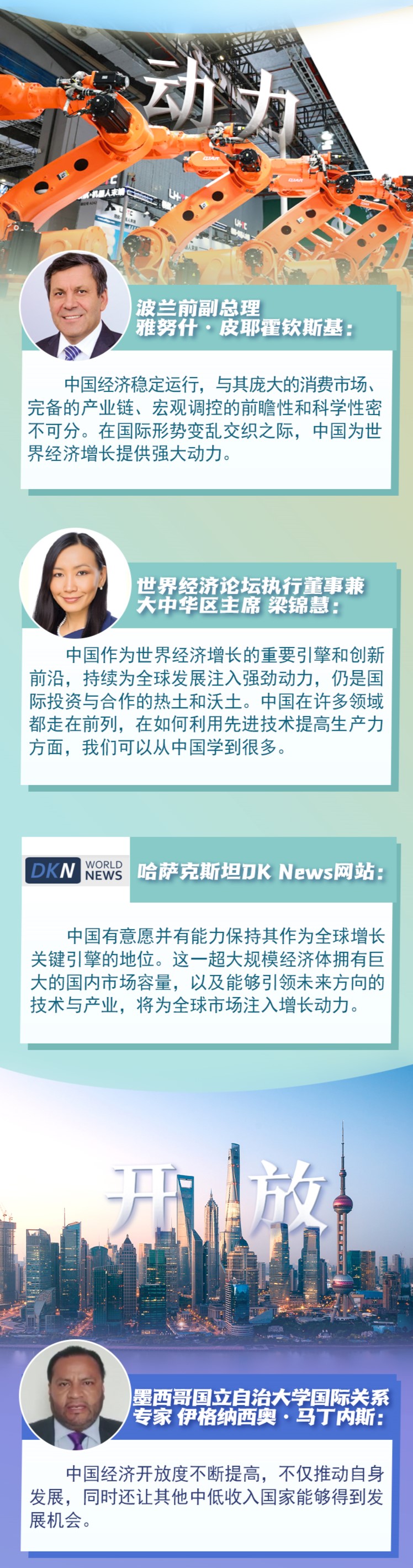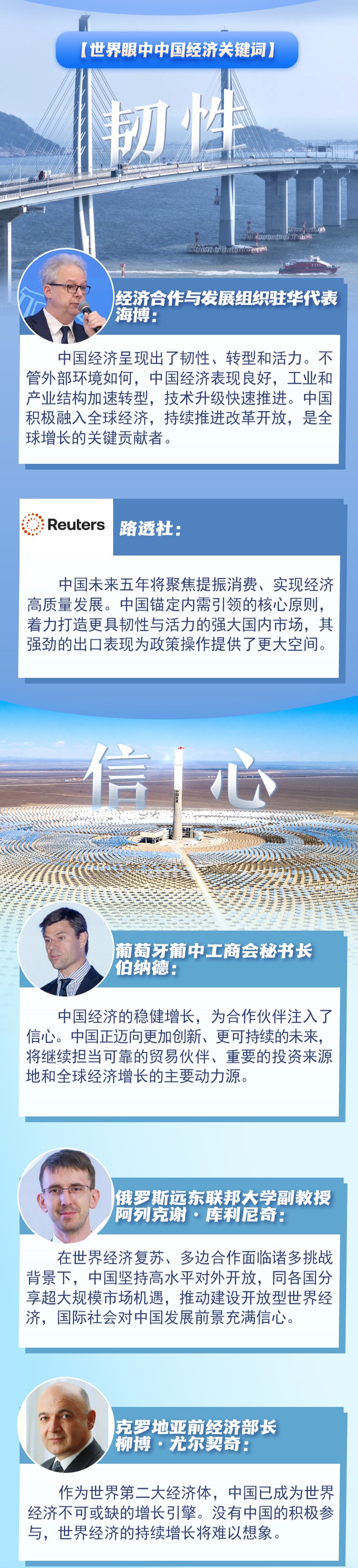 近期,多家國(guó)際機(jī)構(gòu)上調(diào)中國(guó)經(jīng)濟(jì)增長(zhǎng)預(yù)期,多國(guó)人士及媒體認(rèn)為,中國(guó)是世界經(jīng)濟(jì)增長(zhǎng)的重要引擎和創(chuàng)新前沿。韌性、信心、動(dòng)力、開(kāi)放,成為世界眼中的中國(guó)經(jīng)濟(jì)關(guān)鍵詞。