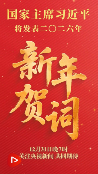 31日晚7時(shí),國(guó)家主席習(xí)近平將通過(guò)中央廣播電視總臺(tái)和互聯(lián)網(wǎng),發(fā)表二〇二六年新年賀詞。