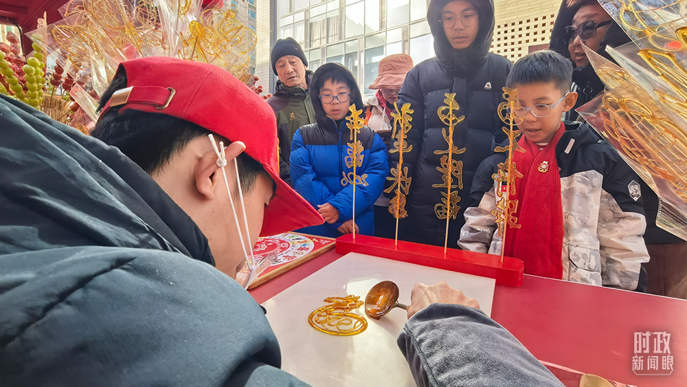 隆福寺街區(qū)新春市集上的特色年貨攤位。(總臺(tái)央視記者劉琦、曹亞星拍攝)