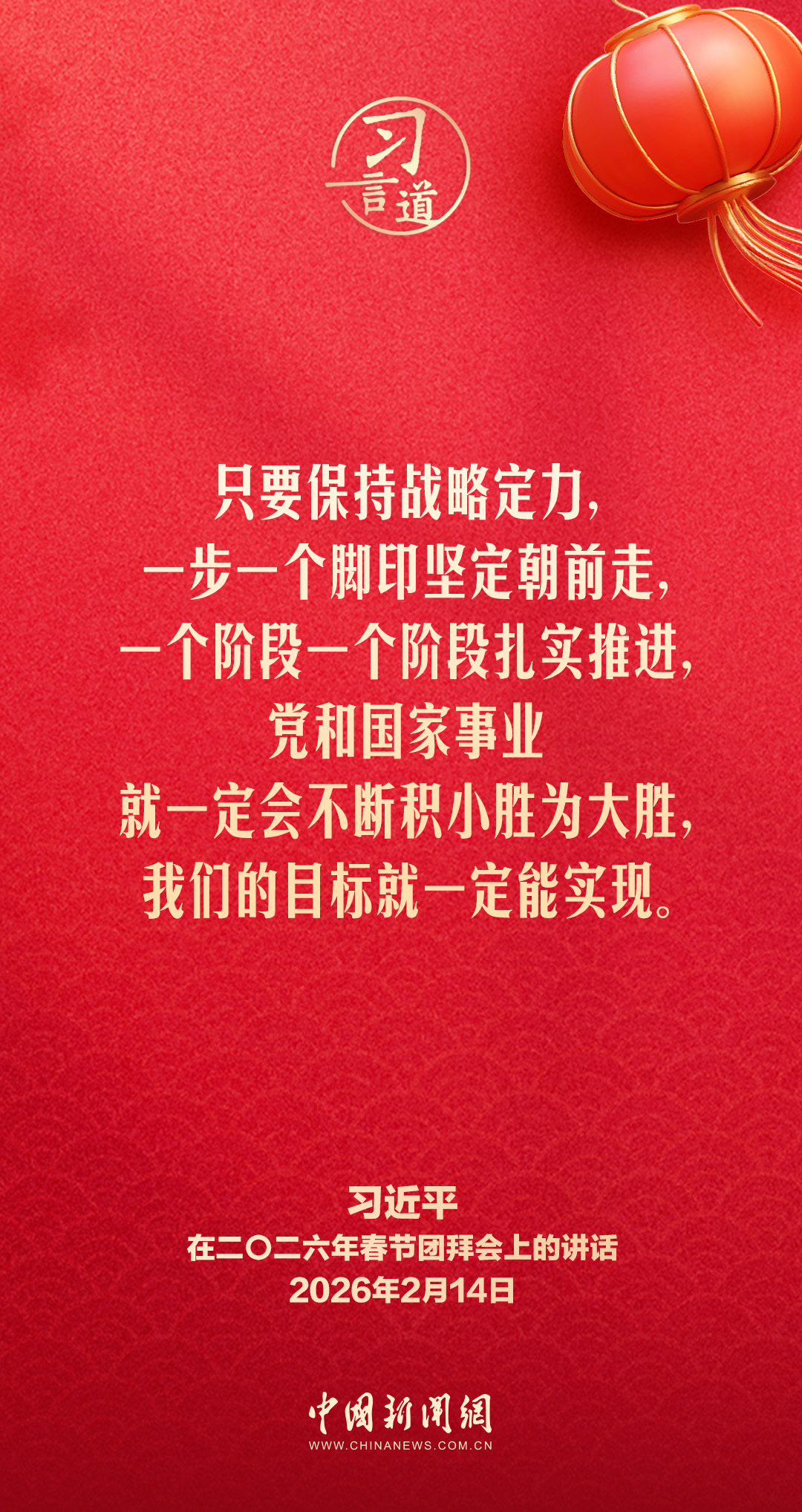 2月14日,中共中央、國(guó)務(wù)院在人民大會(huì)堂舉行2026年春節(jié)團(tuán)拜會(huì)。中共中央總書記、國(guó)家主席、中央軍委主席習(xí)近平發(fā)表講話,代表黨中央和國(guó)務(wù)院,向全國(guó)各族人民,向香港特別行政區(qū)同胞、澳門特別行政區(qū)同胞、臺(tái)灣同胞和海外僑胞拜年。他指出——