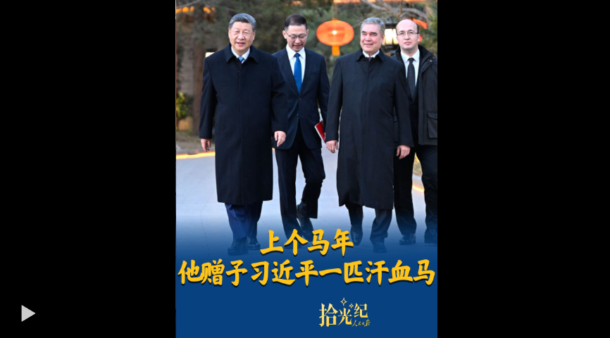 3月18日,國(guó)家主席習(xí)近平會(huì)見(jiàn)土庫(kù)曼斯坦民族領(lǐng)袖、人民委員會(huì)主席別爾德穆哈梅多夫。2014年,別爾德穆哈梅多夫曾贈(zèng)予中方一匹汗血馬?!巴苿?dòng)中土關(guān)系像汗血寶馬一樣馬不停蹄、一馬當(dāng)先”,一起回顧中土的“駿馬外交”。