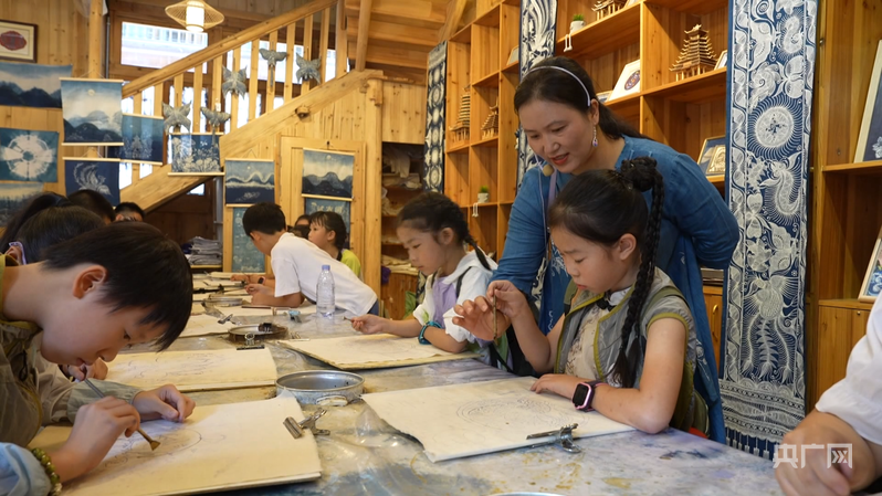 陸勇妹正在教孩子們學(xué)習(xí)蠟染技藝(央廣網(wǎng)發(fā) 吳光輝 攝)