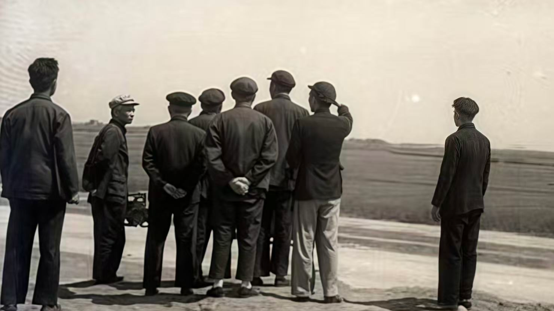 1955年,校長彭康與教授們在西安麥田中踏勘新校址(圖片來源:西安交通大學新聞網(wǎng))