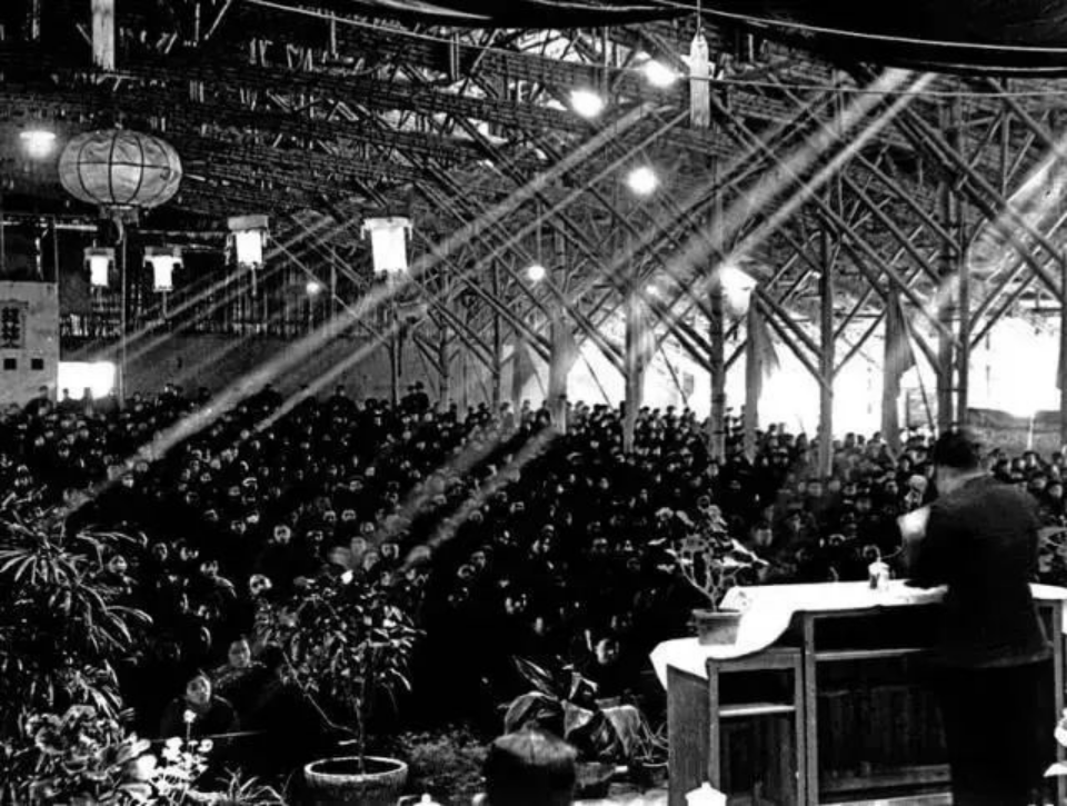 用竹篾草棚搭建的臨時大禮堂(圖片來源:西安交通大學新聞網(wǎng))