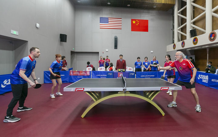 2021年4月10日,上海舉行紀(jì)念中美“乒乓外交”50周年系列活動(dòng)。這是中美選手參加乒乓球友誼賽。新華社記者 王翔 攝