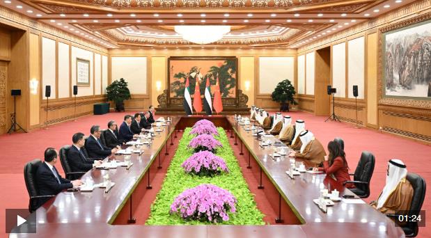 哈立德說:“主席閣下,阿聯(lián)酋和中國的關(guān)系歷史悠久、根基深厚。阿聯(lián)酋高度重視同中國的伙伴關(guān)系。我們致力于進(jìn)一步推動(dòng)兩國關(guān)系向前發(fā)展,開拓更廣闊的前景?!?/p>