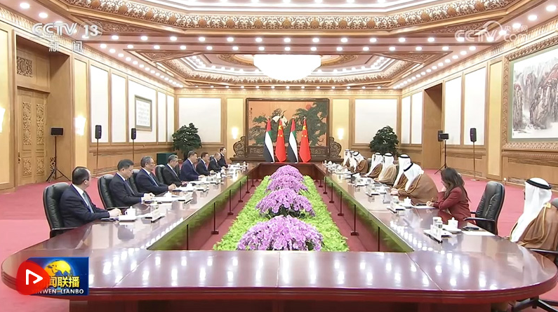 習近平指出,阿聯(lián)酋是中國的全面戰(zhàn)略伙伴,中方始終高度重視發(fā)展同阿聯(lián)酋的關(guān)系。在雙方共同努力下,中阿關(guān)系保持健康穩(wěn)定發(fā)展,政治互信不斷加深,務(wù)實合作穩(wěn)步推進,人文交流豐富多彩。鞏固和提升中阿關(guān)系是雙方的堅定共識,符合兩國人民期待。中方愿同阿方攜手同行,打造更加穩(wěn)固堅韌、富有活力的中阿全面戰(zhàn)略伙伴關(guān)系。雙方要繼續(xù)在涉及彼此核心利益和重大關(guān)切問題上相互支持,保持高層交往,筑牢戰(zhàn)略互信。加強發(fā)展戰(zhàn)略對接,在能源、投資、貿(mào)易、科技等領(lǐng)域深挖潛力,深化互利合作。推動教育、民航、旅游等合作取得更大進展,密切人文交流,夯實民意基礎(chǔ)。在聯(lián)合國、金磚國家等多邊平臺增進協(xié)調(diào)合作,以中阿關(guān)系的穩(wěn)定性應(yīng)對國際和地區(qū)形勢的不確定性,共同推動構(gòu)建人類命運共同體。