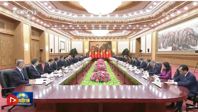 蘇林表示,這是我當(dāng)選越南國家主席后首次出訪,也正值習(xí)近平總書記、國家主席去年對越進(jìn)行歷史性訪問一周年,充分反映了總書記同志所說的“鄰里越走越親”。越方感謝中國共產(chǎn)黨、政府和人民對越共十四大提供的重要政治支持,愿始終同中方賡續(xù)傳統(tǒng)友誼,推動(dòng)兩國全面戰(zhàn)略合作伙伴關(guān)系和具有戰(zhàn)略意義的命運(yùn)共同體不斷發(fā)展。越方祝賀中國勝利完成“十四五”規(guī)劃并取得歷史性成就,相信中方將順利實(shí)施“十五五”規(guī)劃,不斷推進(jìn)高質(zhì)量發(fā)展和社會主義現(xiàn)代化建設(shè),如期實(shí)現(xiàn)第二個(gè)百年奮斗目標(biāo),并成為世界和平發(fā)展的支柱力量和首要?jiǎng)恿Α?/p>