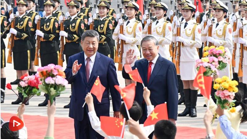 雙方要同心協(xié)力,攜手同行現(xiàn)代化道路。要加快發(fā)展戰(zhàn)略對接,優(yōu)先推進(jìn)基礎(chǔ)設(shè)施互聯(lián)互通。要加強(qiáng)人工智能、半導(dǎo)體、物聯(lián)網(wǎng)等新興領(lǐng)域合作。中方歡迎更多越南優(yōu)質(zhì)產(chǎn)品進(jìn)入中國市場。雙方要繼續(xù)加強(qiáng)旅游、文化、媒體、教育、衛(wèi)生、體育等友好交流合作,促進(jìn)兩國人民相知相親。我愿同你一道宣布啟動(dòng)2026-2027年“中越旅游合作年”。