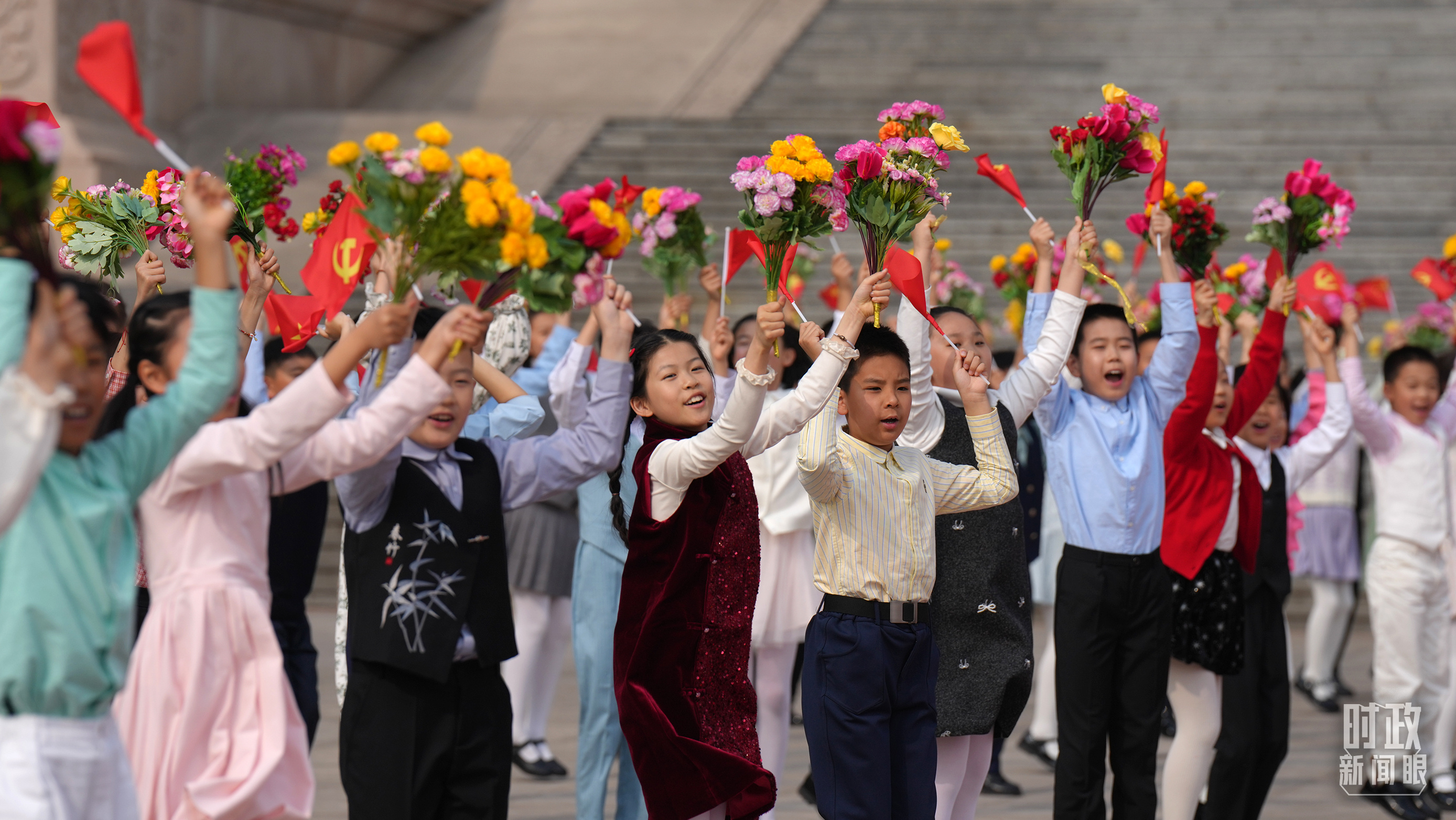 歡迎儀式上的少年兒童。(總臺記者李晉拍攝)