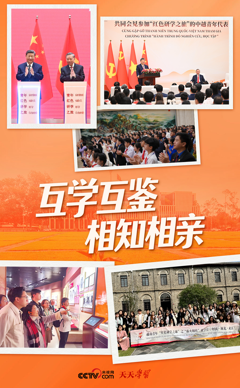 2025年4月15日,習(xí)近平總書記在訪問越南期間宣布,中方將在今后3年邀請(qǐng)?jiān)侥锨嗄旮叭A開展“紅色研學(xué)之旅”,沿著兩黨兩國老一輩領(lǐng)導(dǎo)人的革命足跡,探尋中越友好的紅色基因,感受中國式現(xiàn)代化的萬千氣象,為兩國各自社會(huì)主義事業(yè)和構(gòu)建具有戰(zhàn)略意義的中越命運(yùn)共同體凝聚青春力量。當(dāng)日,中越兩黨兩國領(lǐng)導(dǎo)人與雙方代表共同按下按鈕,啟動(dòng)“紅色研學(xué)之旅”項(xiàng)目,為兩國青年搭建起跨越國界、聯(lián)結(jié)初心的友誼橋梁。