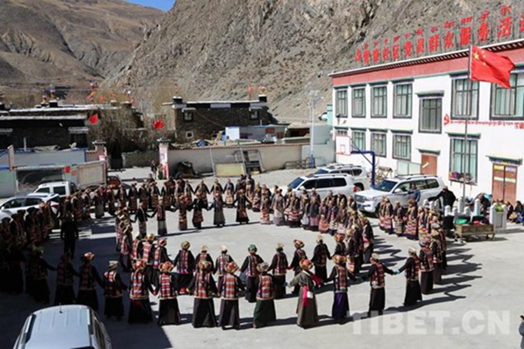 圖為2019年西藏自治區(qū)山南市瓊結鎮(zhèn)雪康社區(qū)婦女跳果諧慶?!叭恕眿D女節(jié)