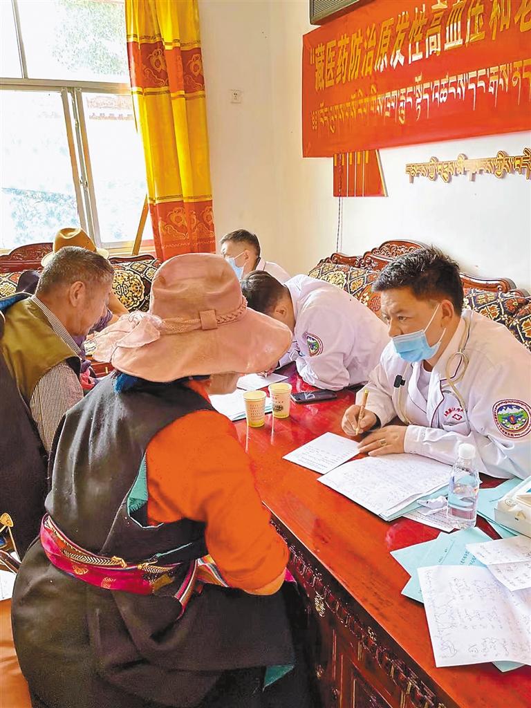 西藏藏醫(yī)藥大學(xué)附屬醫(yī)院邀請(qǐng)?jiān)簝?nèi)專(zhuān)家前往基層一線開(kāi)展義診活動(dòng)。 記者 桑鄧旺姆 楊子彥 攝