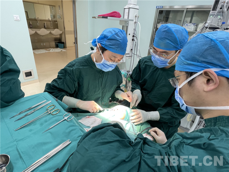 圖為中國醫(yī)學科學院整形外科醫(yī)院唇腭裂整形科副主任醫(yī)師吳鏑(左一)正在為來自青海省果洛藏族自治州的患兒做手術(shù) 攝影:馬劉紅