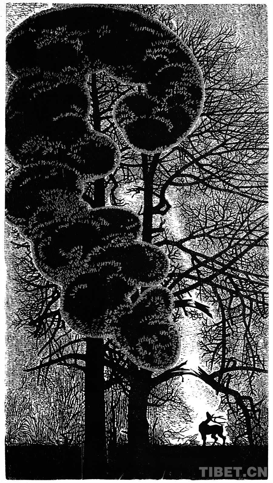 1975年籌辦《西藏文藝》,自治區(qū)宣傳部抽調(diào)包括我在內(nèi)的幾個人,其中有羅志龍、央金、張蜀華等。我既做美編也編文字稿。從《西藏文藝》改為《西藏文學》,請郭老(沫若)題寫封面;從季刊到雙月刊到月刊,我一直當了15年編輯,主要從事美編。就我的想法來說,西藏沒有專業(yè)的美術刊物,《西藏文學》應當為培養(yǎng)美術人才提供一個園地。從封面和插圖的組稿、編稿、刊用,都比較注意發(fā)現(xiàn)和培養(yǎng)美術新人。在我所組織的美術作品中,后來獲得國家級金牌獎、二等獎和優(yōu)秀獎的作品各一幅,還有一些本區(qū)大獎。平鋪直敘地說,美編工作對我個人而言也很有意義,意義在于可以為文學作品畫插圖。我對美術的興趣正是從插圖開始的。過去接觸好的文學作品往往是從插圖看起。插圖應是一個單獨的門類,所要求的基本功和其他畫種一樣,同時另有它自身的要求。好的插圖有獨立欣賞的價值,具有構思的深度和形式上的完整。這樣的例子太多太多,就不去說它了。