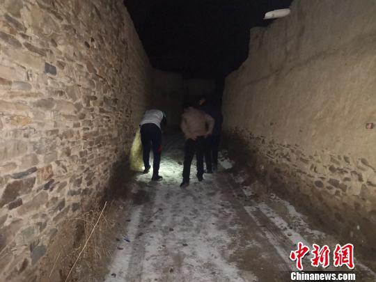 圖為青海省玉樹(shù)州稱(chēng)多縣環(huán)境保護(hù)和林業(yè)局工作人員沿雪豹留下的腳印找尋蹤跡。 鐘欣 攝