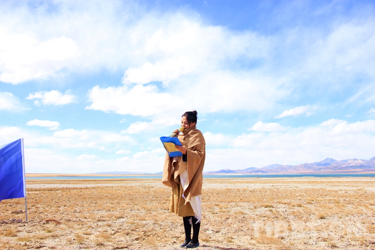 中國西藏網(wǎng)訊 10月13日,懷揣著對“詩和遠方”的憧憬,2019西藏首屆詩歌節(jié)活動組一行抵達阿里地區(qū)改則縣境內(nèi)。當(dāng)日下午,在美麗的洞措湖邊,在藍天白云和牦牛的陪伴下,“行走中的詩歌節(jié)”進行了詩朗誦活動。