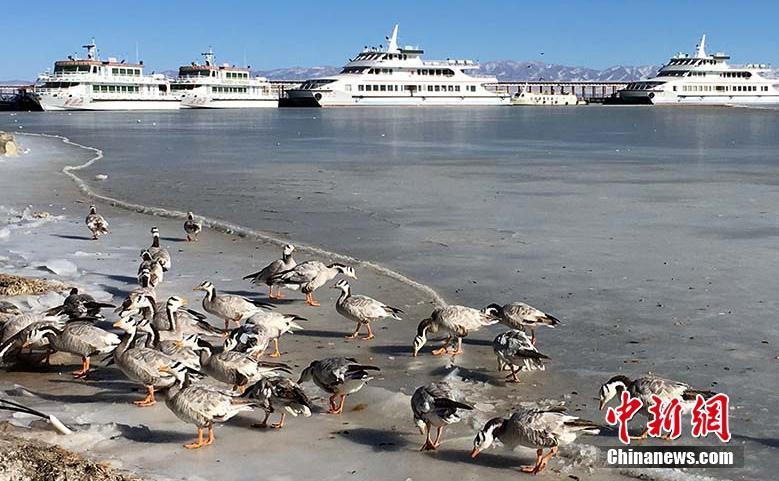 圖為青海湖沿岸出現(xiàn)大片湖冰。傅生武 攝