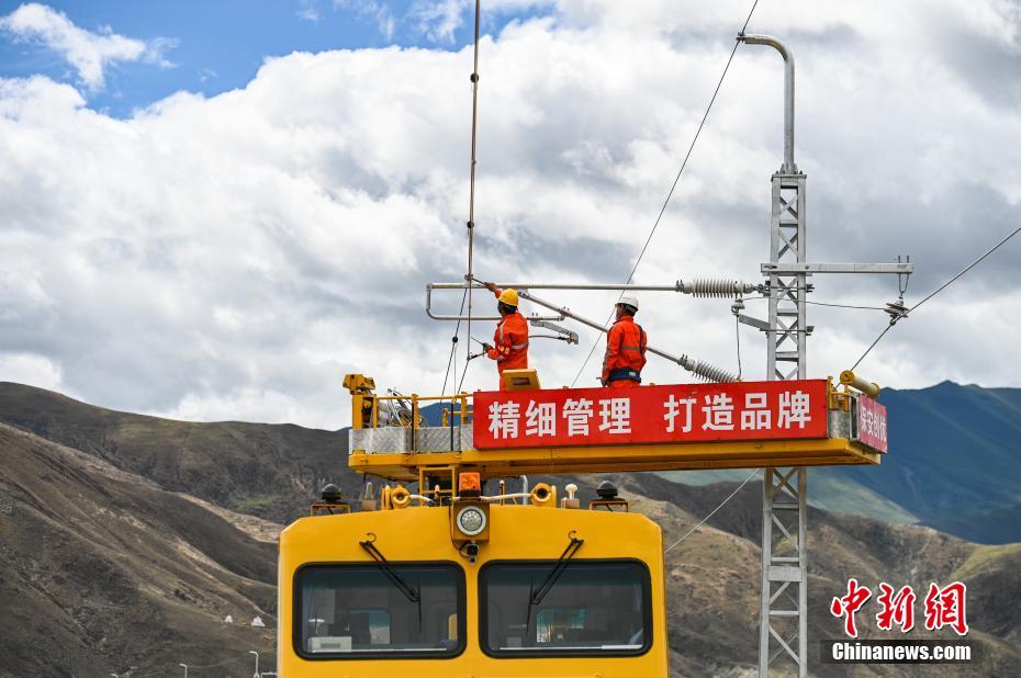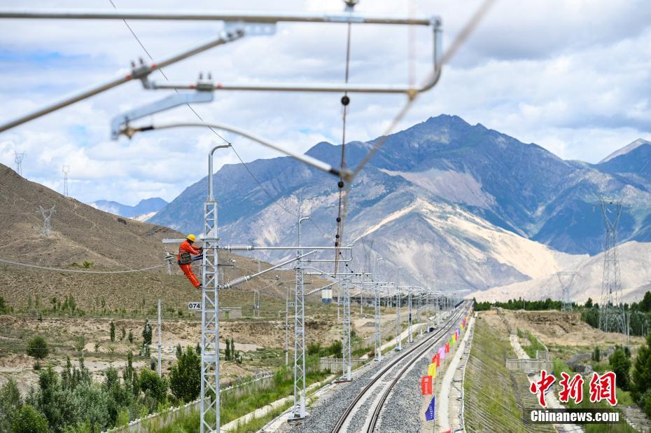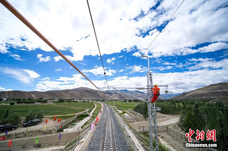 7月6日,中國(guó)中鐵電氣化局施工人員對(duì)拉林鐵路接觸網(wǎng)專業(yè)首件工程進(jìn)行復(fù)檢。當(dāng)日,川藏鐵路拉薩至林芝段(簡(jiǎn)稱“拉林鐵路”)接觸網(wǎng)專業(yè)首件工程在西藏山南市扎囊至扎其區(qū)間成功建成,這為全線施工確定了規(guī)范和標(biāo)準(zhǔn),至此拉林鐵路也進(jìn)入了全線電氣化大規(guī)模施工階段。 拉林鐵路正線全長(zhǎng)435.48公里,是西藏首條電氣化鐵路,正線共需架設(shè)接觸網(wǎng)540.63條公里,設(shè)計(jì)時(shí)速160公里。中新社記者 何蓬磊 攝